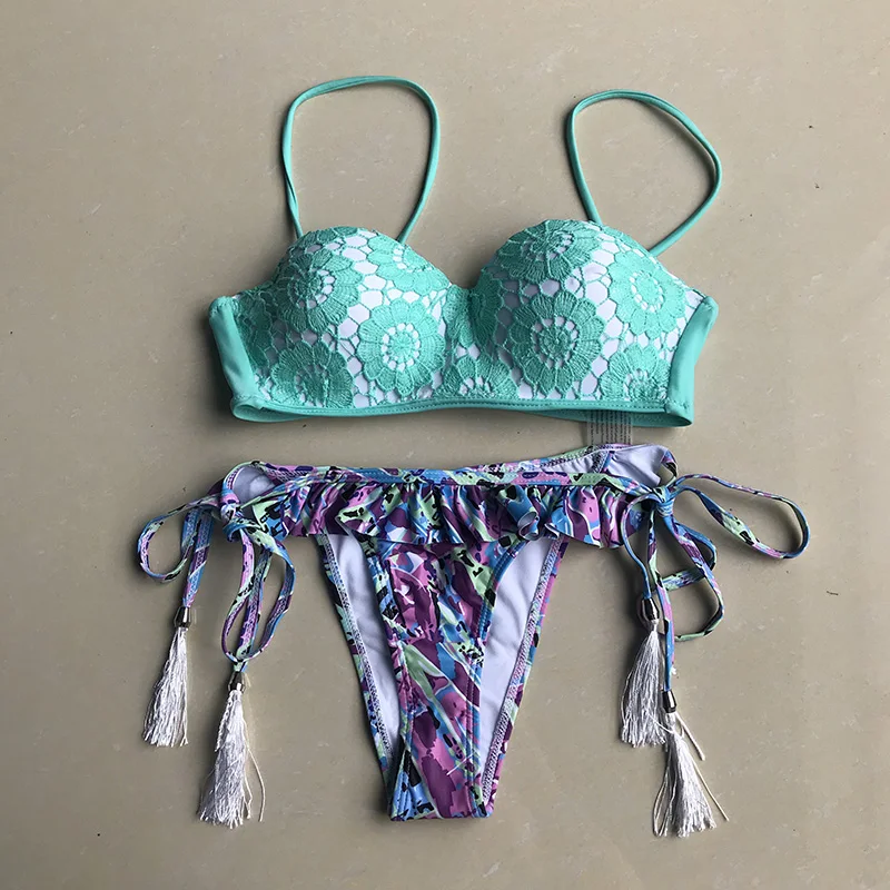 Product Name: 2019 bikinis de encaje 2019 mujer Sexy traje de baño mujer traje de baño verano mujer volantes ropa de playa biquini bañadores nuevo