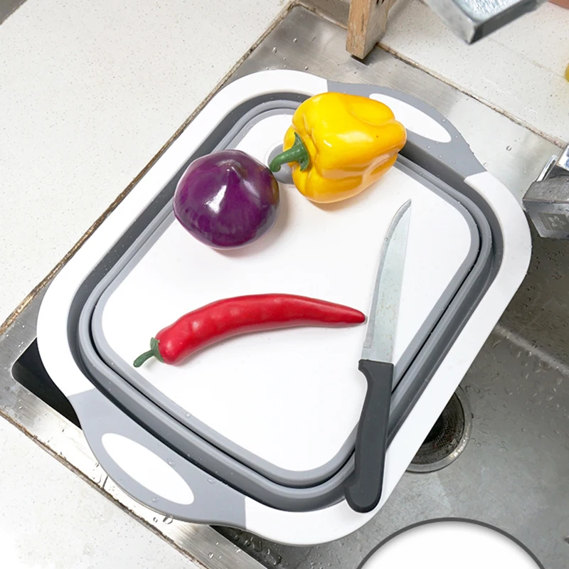 Product Name: Tabla de cortar plegable con cesta bañera de platos multifunción plegable tabla de cortar con cesta de drenaje fregadero de frutas y verduras