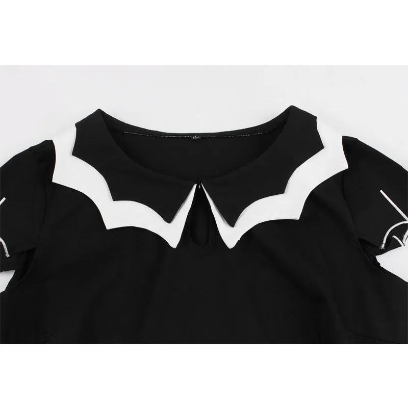 Product Name: OTEN de talla grande Vintage 2019 mujeres manga murciélago bordado Rockabilly Retro Pin up Skater Swing negro Halloween vestidos de fiesta