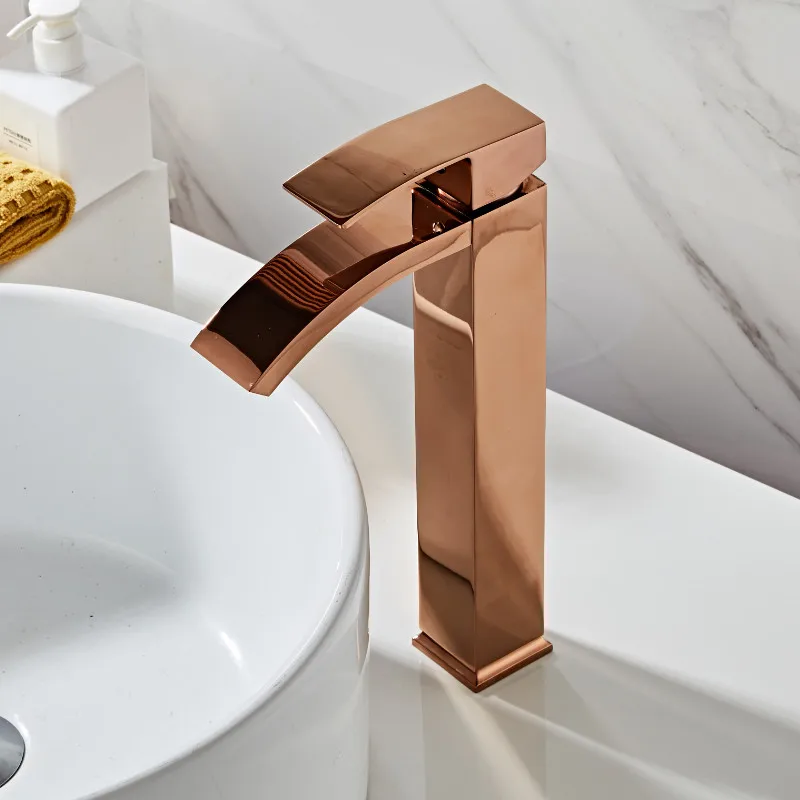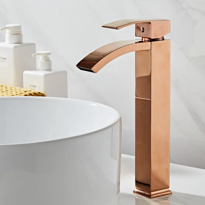 Product Name: Grifo de latón para lavabo, grifo de baño de un solo Mango, torneiras para pia de banheiro, grifo de baño de oro rosa, grifo de cascada