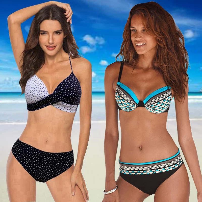 Product Name: Nuevo conjunto de Bikini 2020 Push Up traje de baño Retro mujer traje de baño sólido de talla grande Tankini Vintage Bikini mujer Biquini traje de baño 2XL