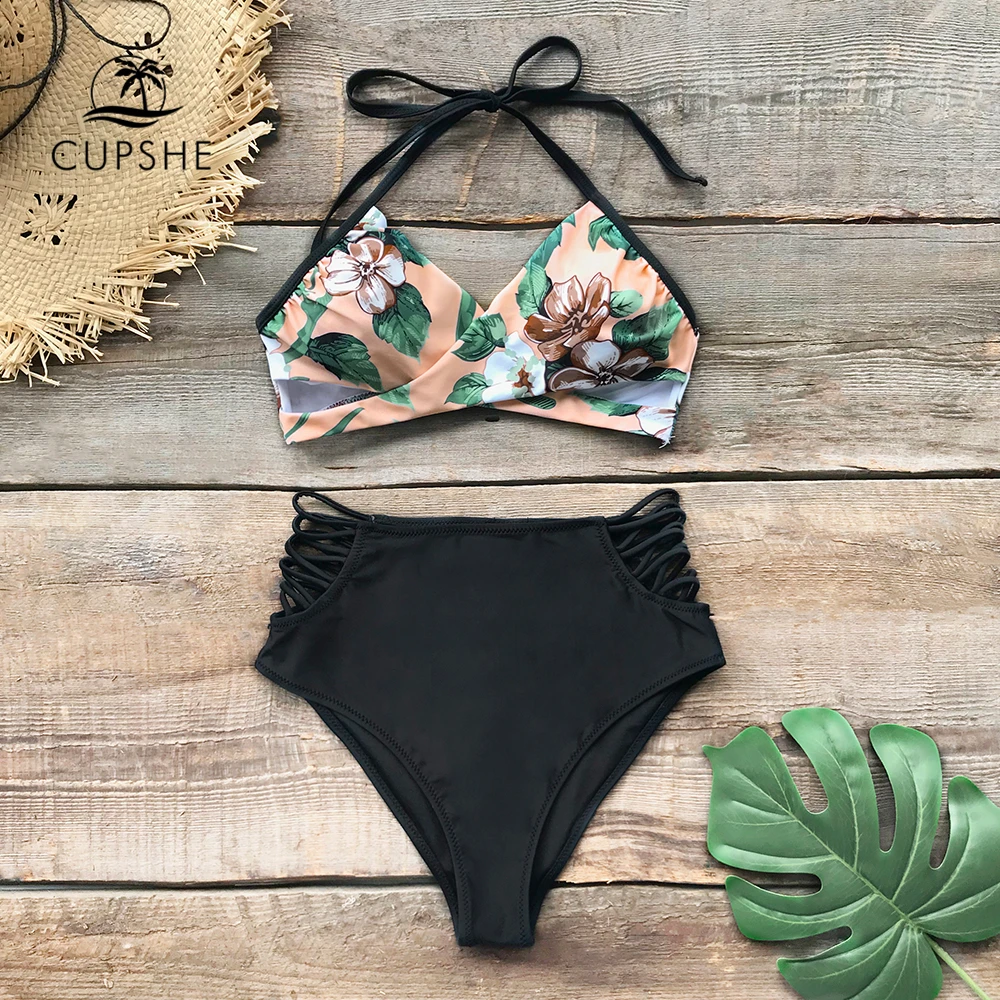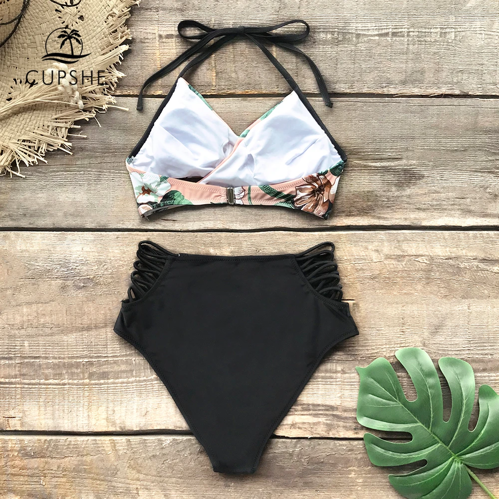 Special Offer CUPSHE verde y de encaje Floral Halter Bikini conjuntos mujeres de encaje de dos piezas trajes de baño 2019 niña playa trajes de baño Discount 42% Today!